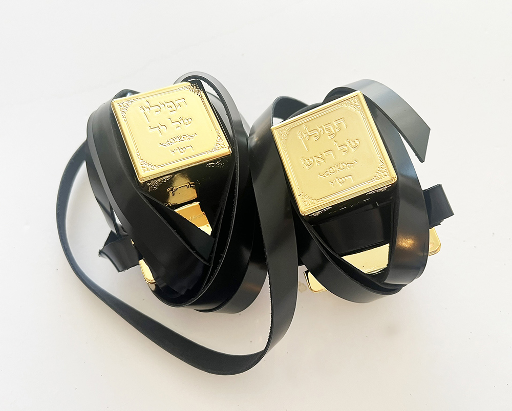 כדי להשלים את המעטפת עבור הבן וליצור מראה ייחודי ומלוכד, דאגנו בסטודיו להזמין עבורו גם סט תפילין כשרות ומהודרות מסופר סת"ם. עבורן, רכשנו בתי תפילין מוזהבות שהשתלבו בהרמוניה מושלמת עם אלמנטים של הזהב והטקסטורה של הסט כולו.
